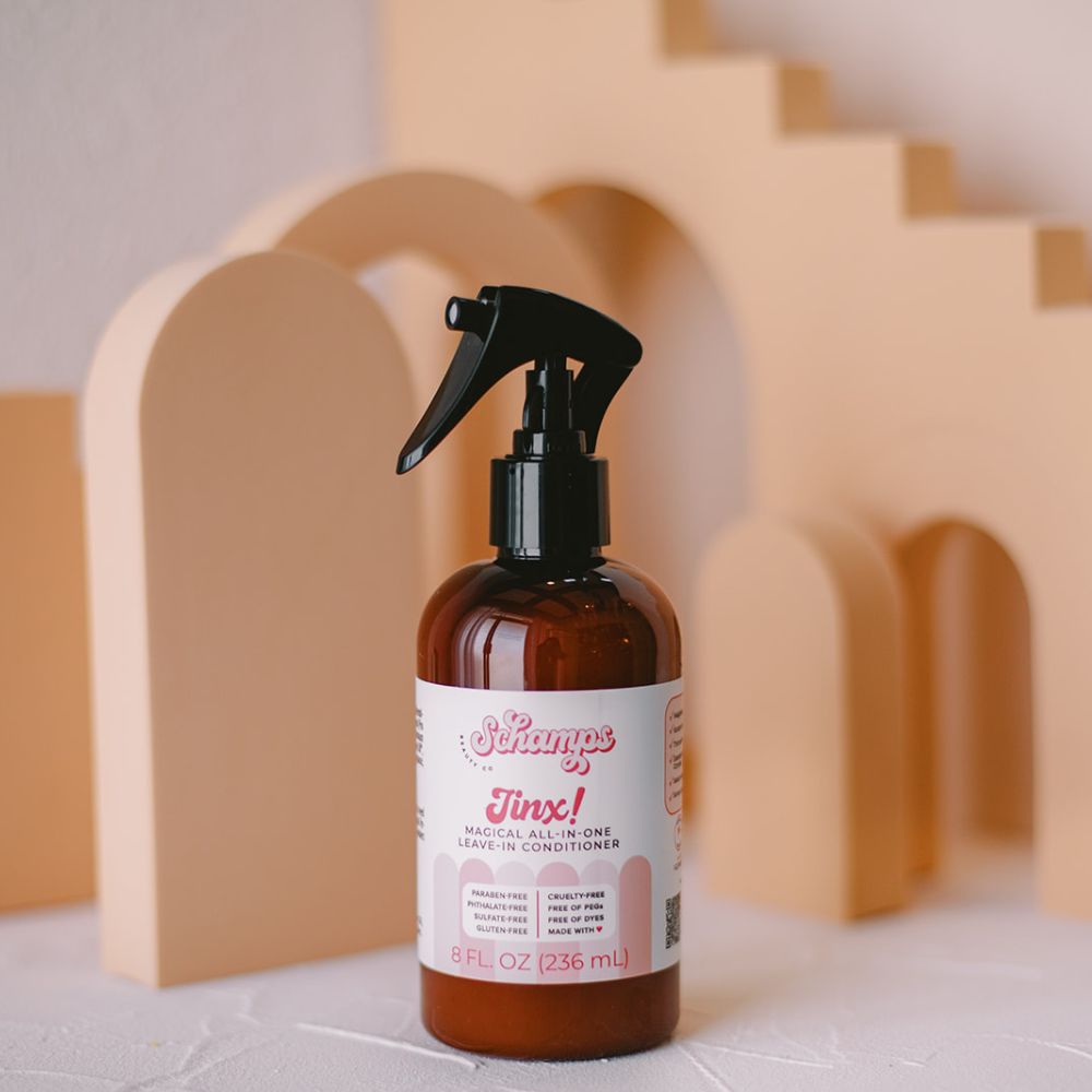 Jinx! is our weightless, keratin-infused, convenient leave-in conditioner that smells like sweet jasmine and leaves hair smooth, shiny, and detangled.